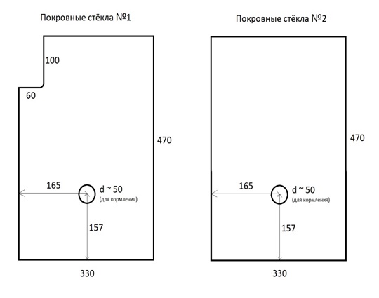 Покровные стёкла (№1 - 2 шт., №2 - 2 шт.) из осветлённого стекла с отверстиями под оборудование и кормление рыбы
